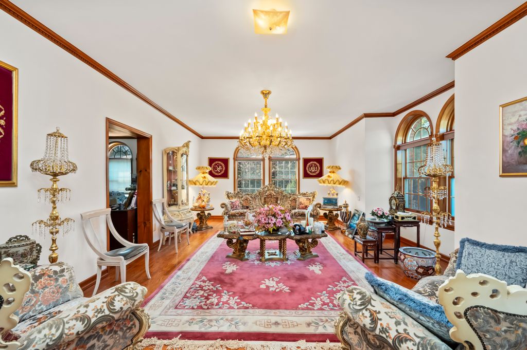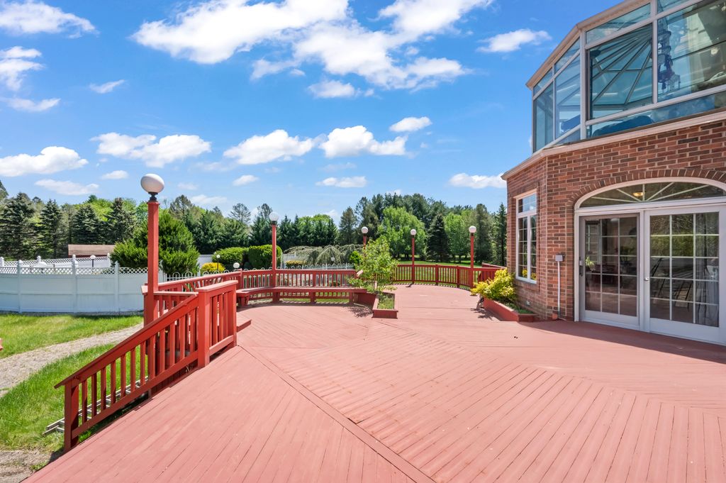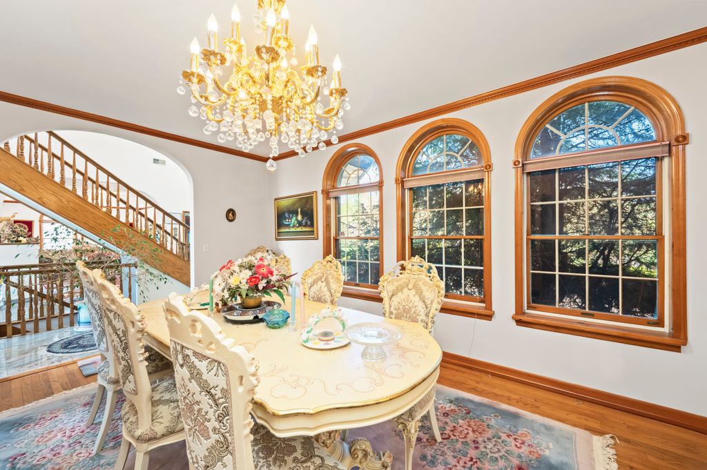 The 1st floor of the home has an ideal layout perfect for entertaining many guests as there is a formal living room & formal dining room, a two story conversation room that provides deck access, a great room as well as an eat-in kitchen with a full array of appliances inclusive of a custom cladded Sub-Zero Refrigerator, compactor, dishwasher, double wall oven, cook top, garbage disposal center island, endless cabinet space as well as a breakfast area overlooking the yard.